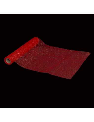 Chemin Table Tulle Rouge Argent 28 x 300 cm - Léger