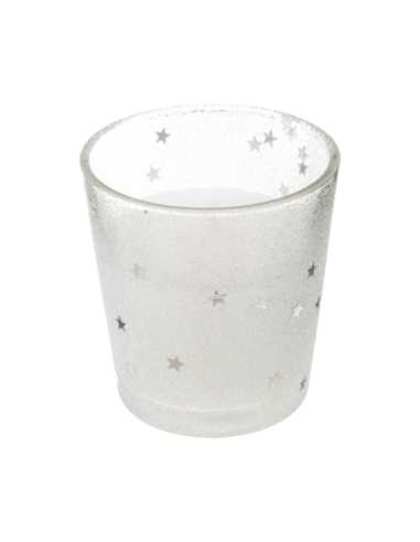Bougie Verre Blanc Pailleté H8 cm 90g - Déco Noël Chic