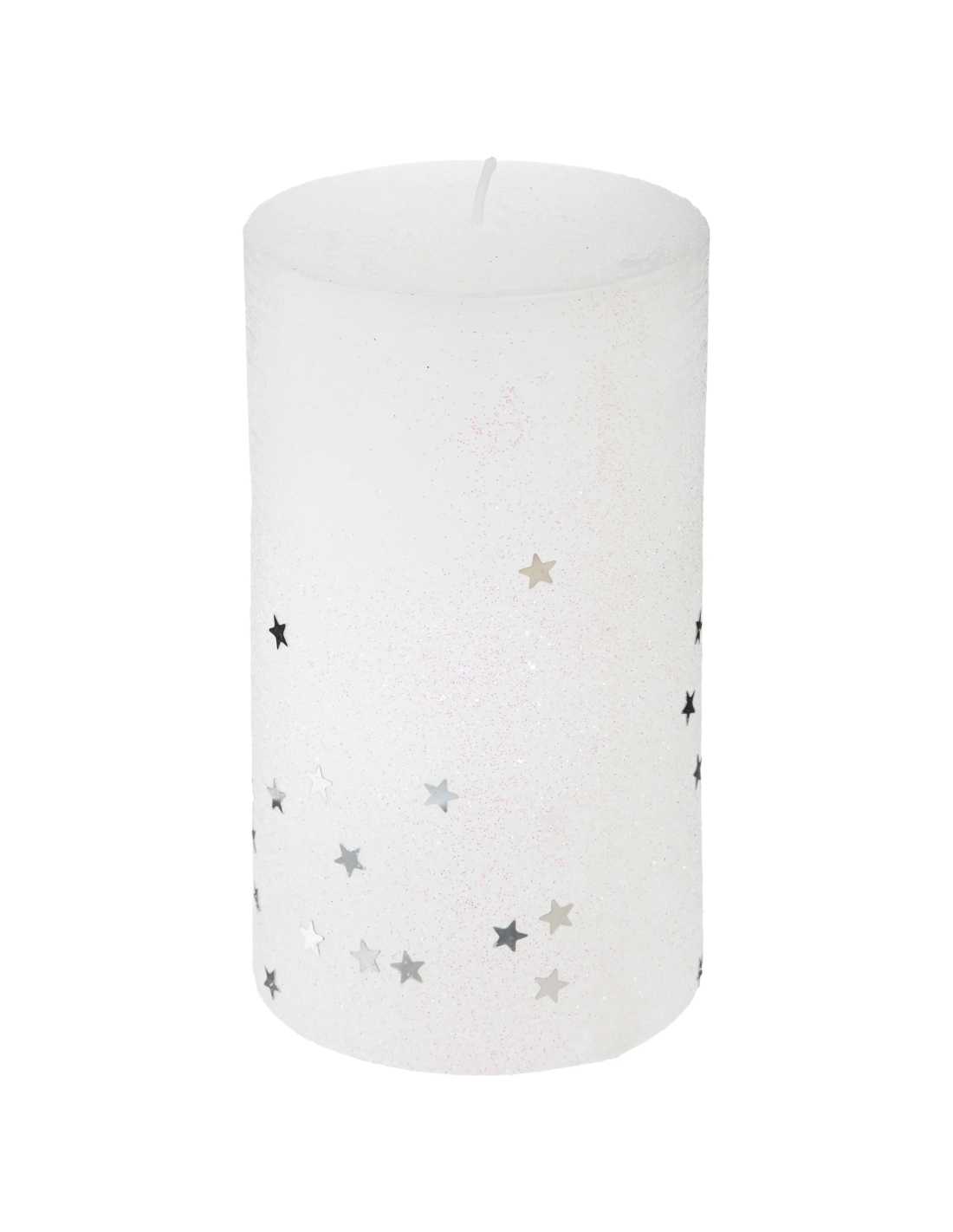 Bougie Cylindre Blanc Pailleté 12 x 7 cm - Élégance Noël