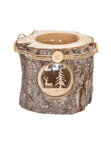 Photophore Rondin Bois 10 x 10 cm + Verre - Noël Rustique