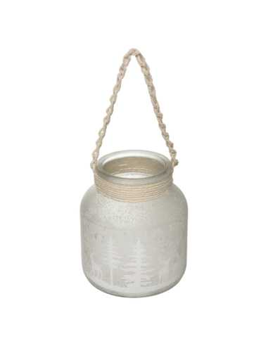 Lanterne Verre 16 cm Paysage Forêt Neige - Noël Poétique