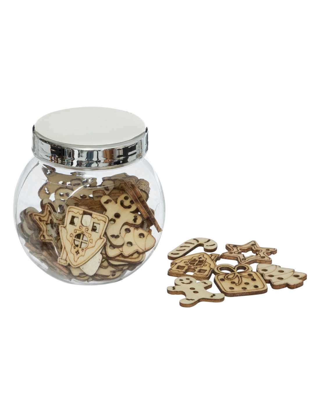Bocal décorations bois thème bonhommes pain d'épices pour une table de Noël gourmande. Ornements adorables pour vos fêtes joyeuses.