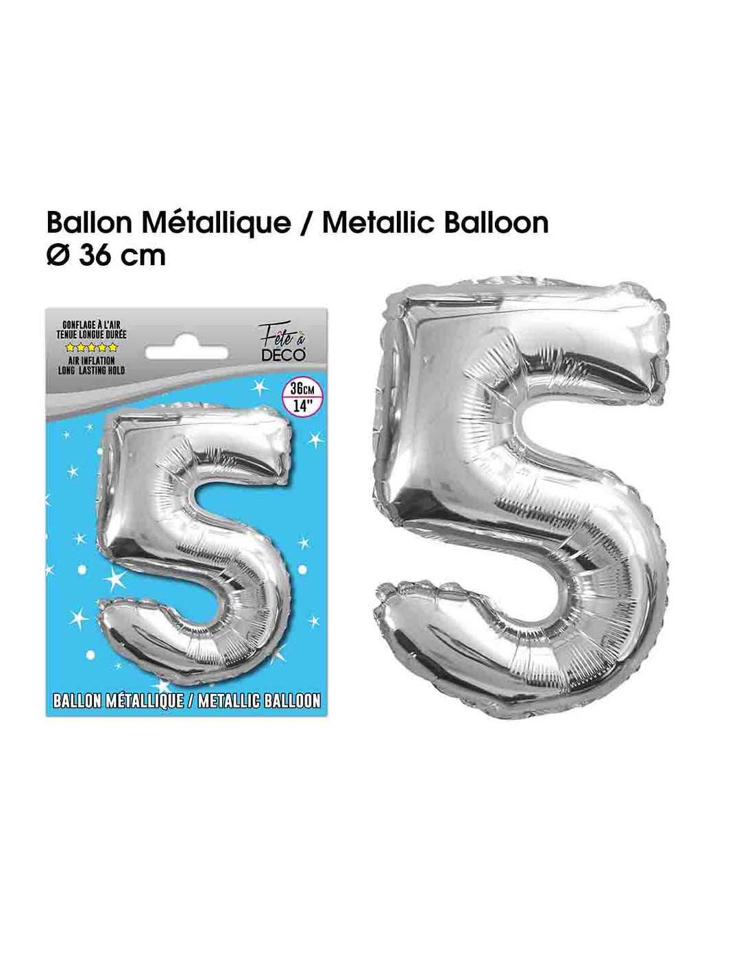 Ballon Metallique Argent Chiffre 5