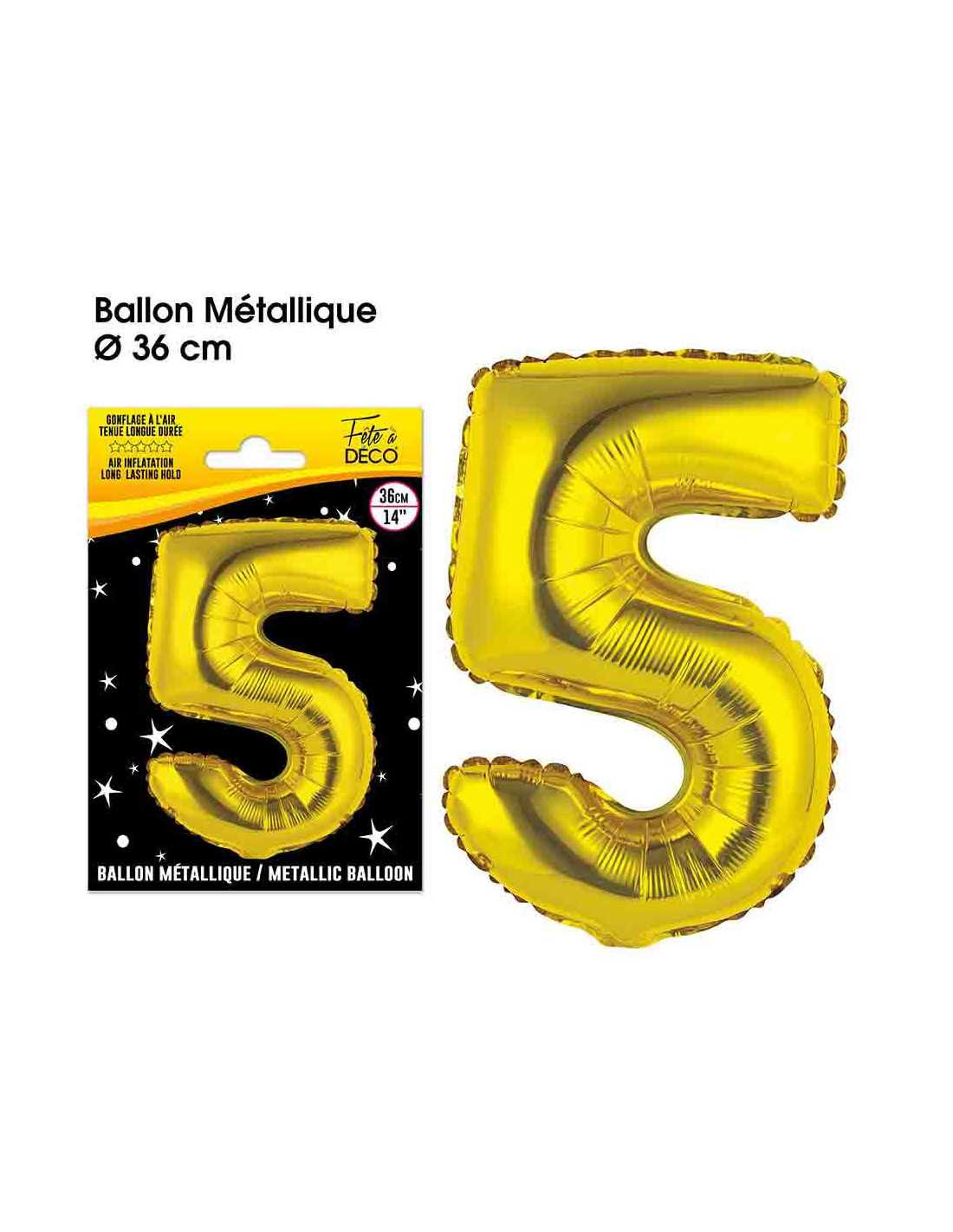 Ballon Metallique Or Chiffre 5