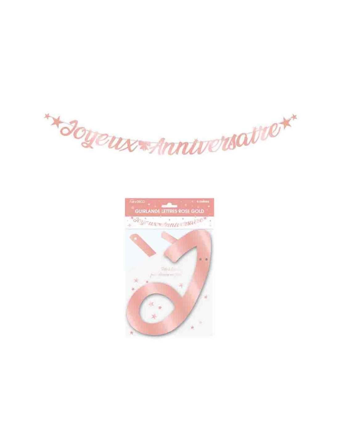 Guirlande Lettres Metallique 6M Joyeux Anniversaire Rose Gold