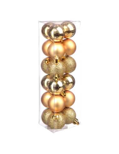 Ajoutez de l’éclat à votre sapin avec ce lot de 18 boules de Noël or, au diamètre 30 mm, mélange de finitions brillant, mat et pailleté.