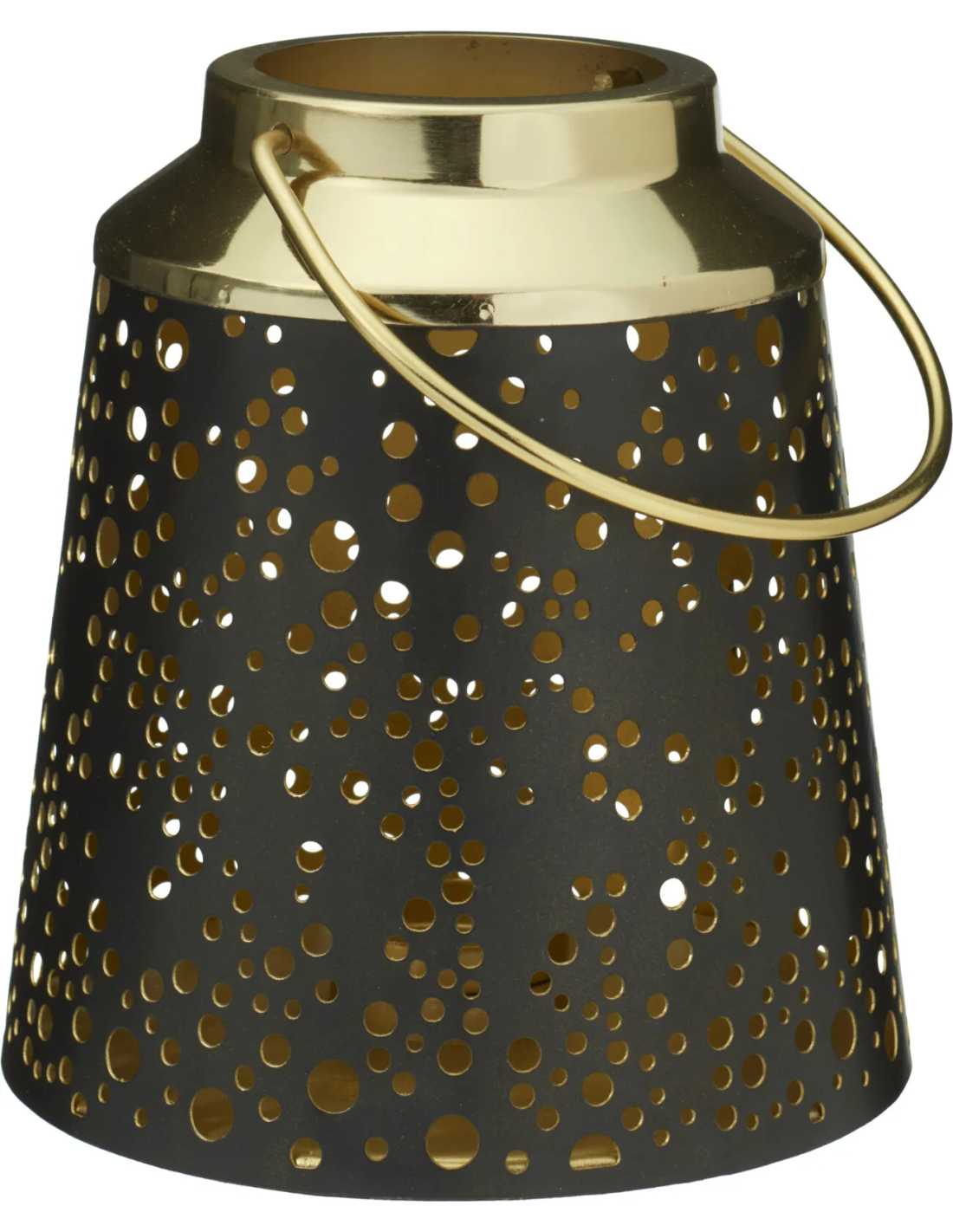 Créez une ambiance chaleureuse avec cette lanterne photophore noir et or, 15 x 16 cm. Élégante et parfaite pour les soirées de Noël.