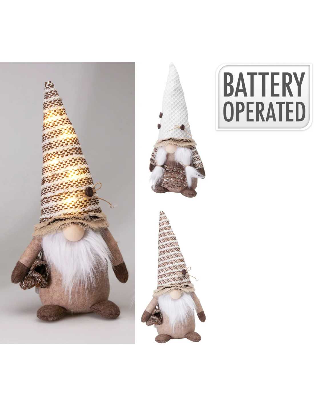 Gnome lumineux marron 36 cm avec LED blanc chaud, esprit enchanteur de Noël, disponible en 2 modèles.