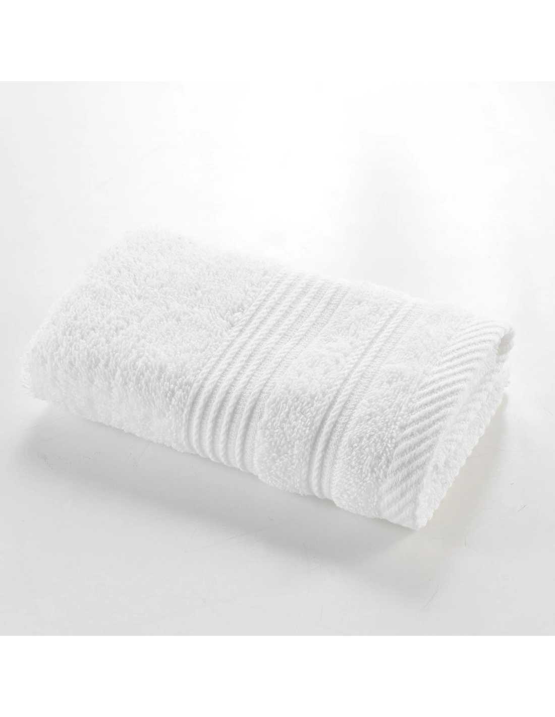 Serviette de toilette blanc 50x90 cm en éponge unie 500g/m². Le format polyvalent du quotidien, doux et absorbant. Collection Tendresse.