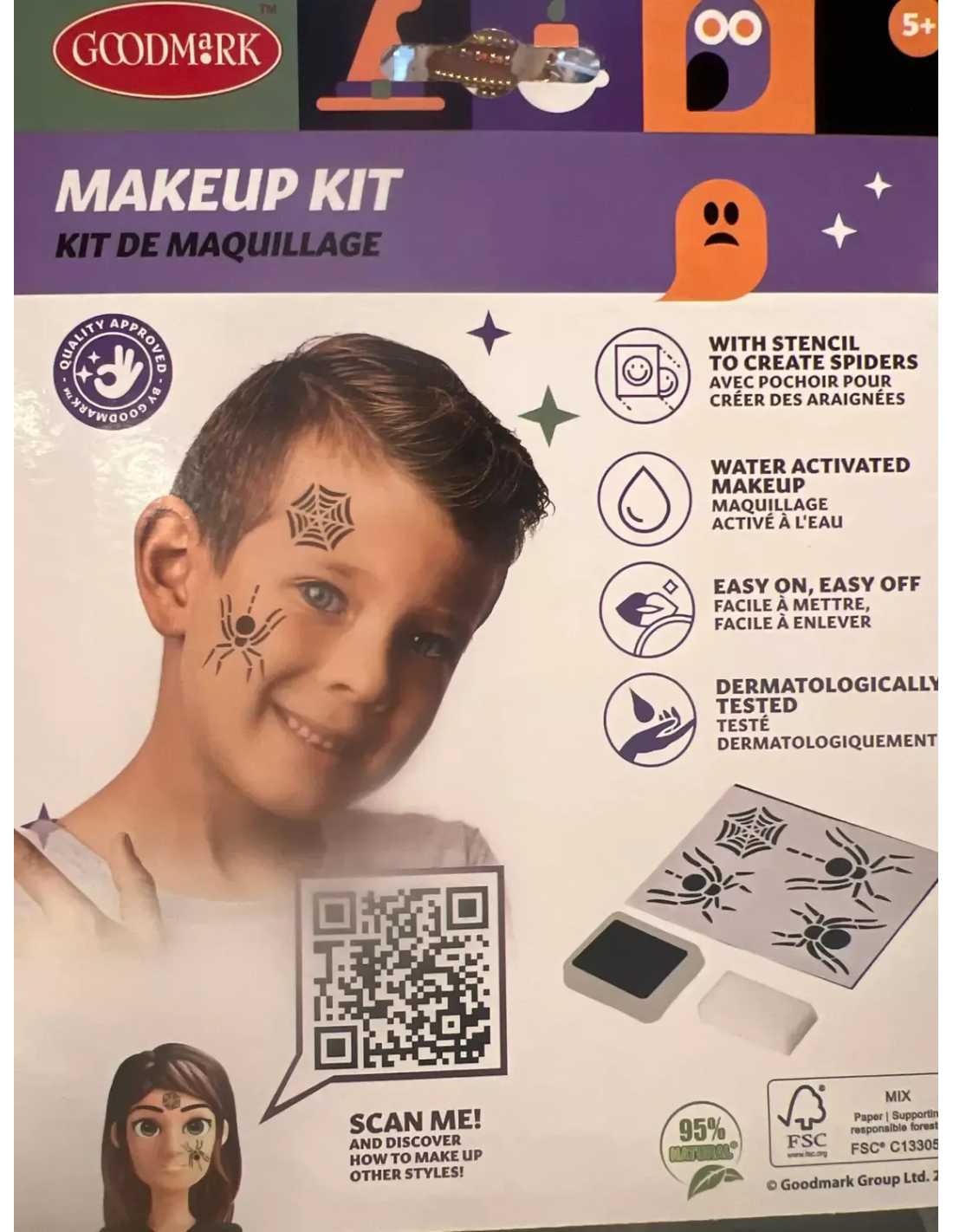 - Contenu : maquillage noir + applicateur + pochoirs araignées