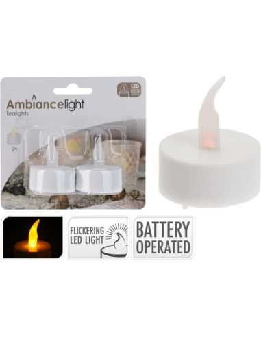 Bougies chauffe-plat LED lot de 2 en blanc chaud avec flamme vacillante. Fonctionnent à pile, parfaites pour une déco lumineuse et sûre.