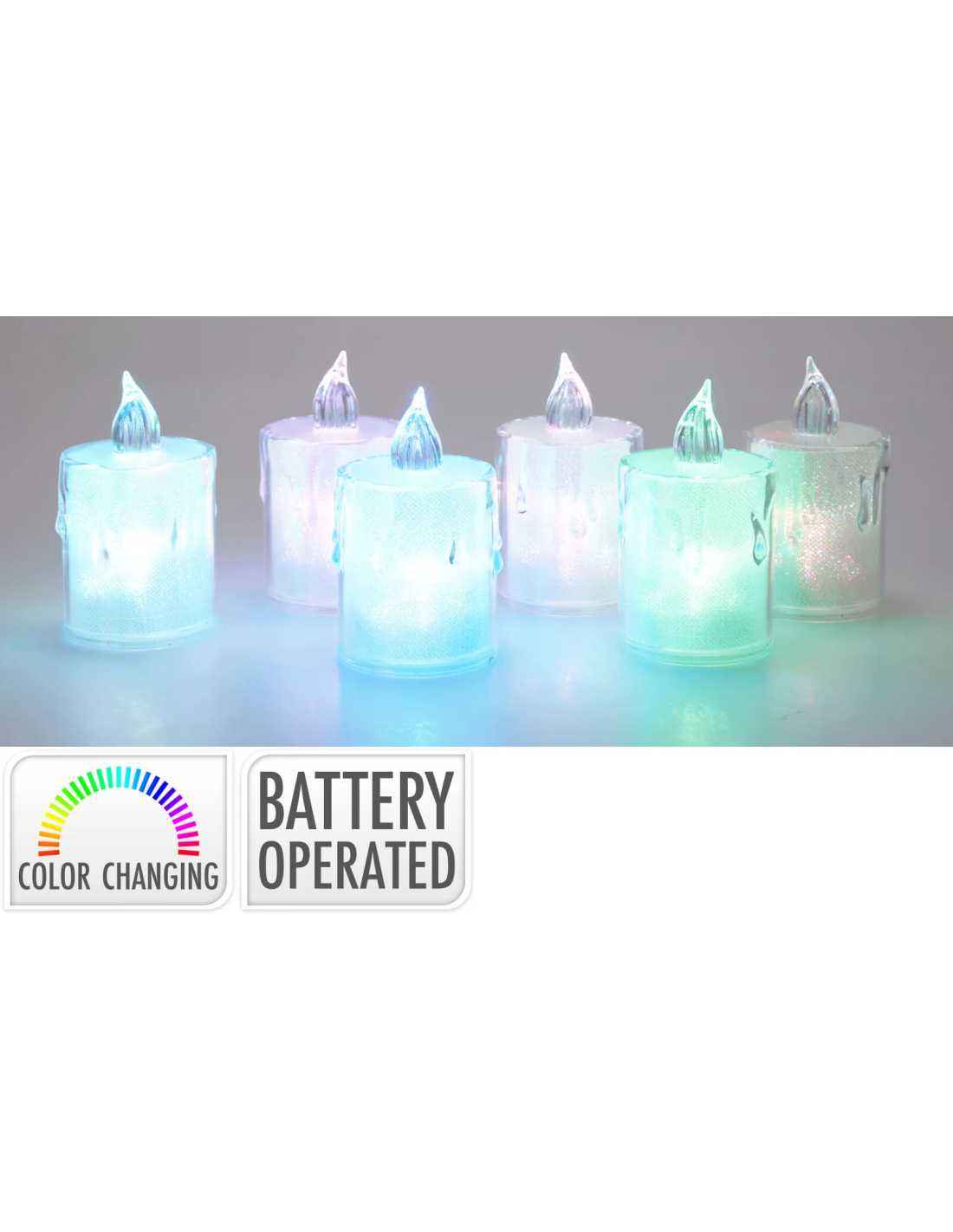 Bougie lumineuse LED RGB 5×8 cm en acrylique, change de couleurs. Fonctionne à pile (fournie), idéale pour créer une ambiance multicolore sans flamme.