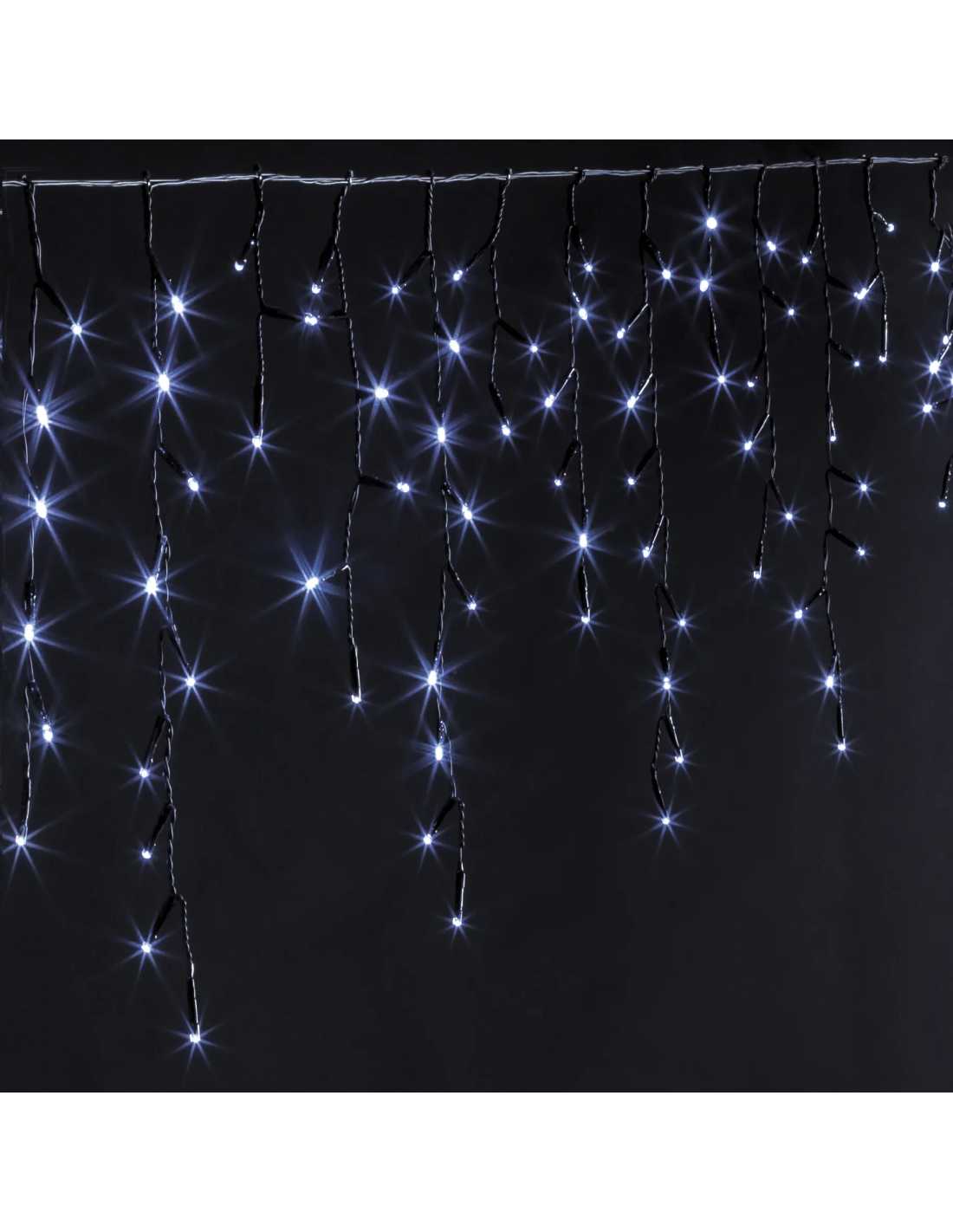 Faites briller vos fêtes avec ce rideau stalactite LED 12m de 360 LED blanc froid. 8 fonctions et timer 8h pour une déco magique extérieure.