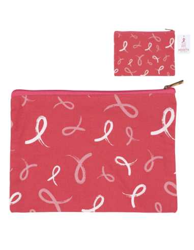 Pochette 20x15 cm Octobre Rose, pratique, élégante et engagée, idéale pour transporter vos petits objets tout en soutenant la cause.