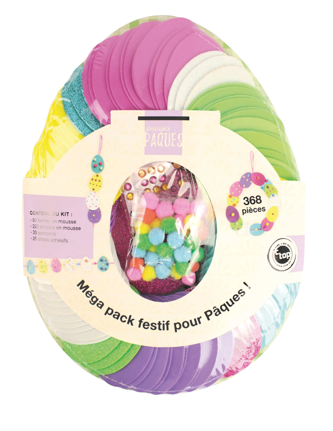 Pour les ateliers créatifs en grand, ce Méga Pack de Pâques est la solution idéale ! Avec 375 pièces au total — formes en mousse, stickers, pompons et strass — vous avez de quoi animer des heures d'activités créatives pour toute la famille ou une classe entière. Un pack festif, complet et économique pour célébrer Pâques avec créativité !