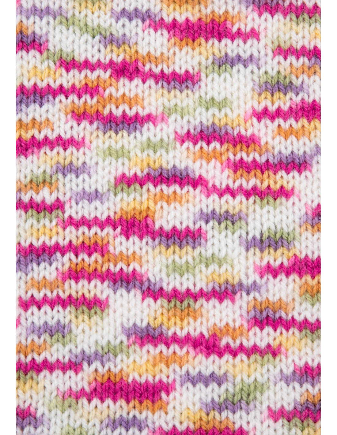 La pelote Lisa Premium Color 50g 02 associe des nuances de rose, orange et jaune pour des créations au tricot ou crochet pleines de vitalité et de chaleur.