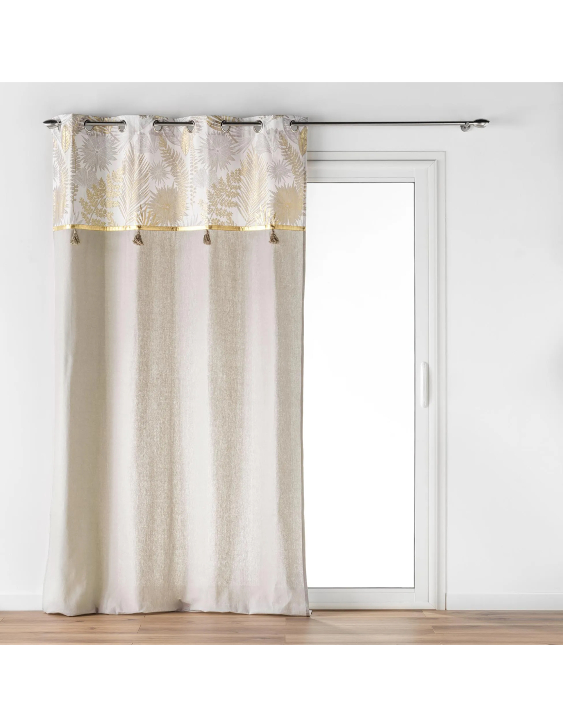Apportez une touche chaleureuse et raffinée à votre intérieur avec le rideau Mélisse Pompon. Son tissu en polyester de qualité est orné de pompons décoratifs et d'un haut métallisé doré, créant un effet lumineux et élégant. Ce voilage tamisant habille vos fenêtres avec style tout en préservant votre intimité.