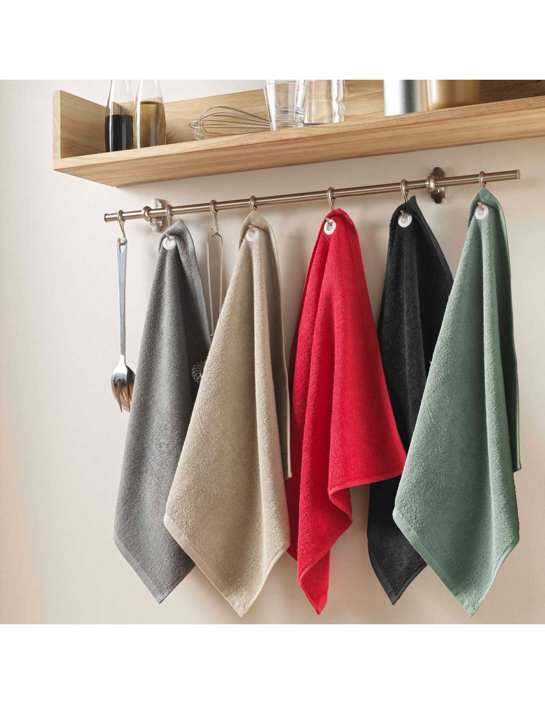 Un essuie-main qui a autant de style que d'utilité. Cet essuie-main carré 50x50 cm en éponge unie de la collection Cuistot est parfait pour votre cuisine ou salle de bain. Sa couleur rouge apporte une note graphique et chaleureuse à votre espace. L'œillet en plastique intégré permet une suspension facile et pratique.