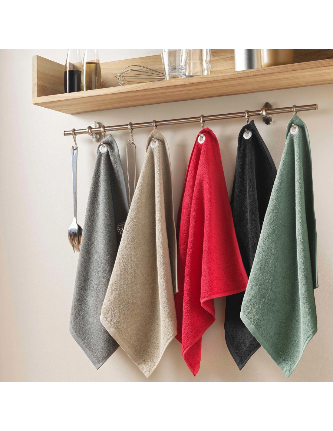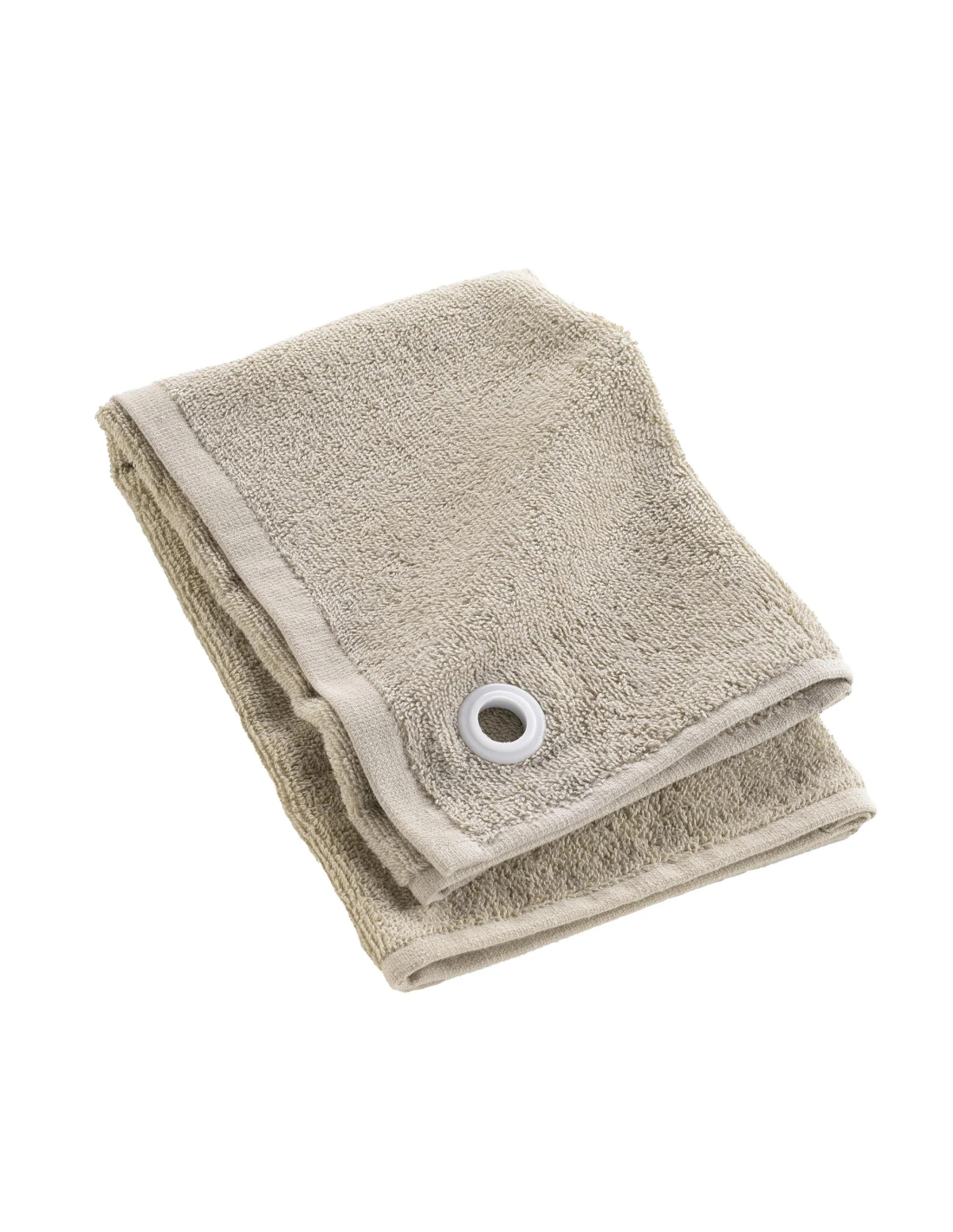 Essuie-main carré 50x50 cm en éponge unie lin. Pratique et stylé pour votre cuisine, avec œillet de suspension. Collection Cuistot.